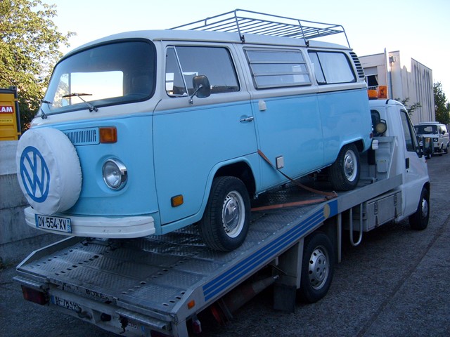 Nous sommes allés récupérer ce combi en Normandie suite à une important fuite d’huile afin de le remettre sur pied afin que son propriétaire qui vient