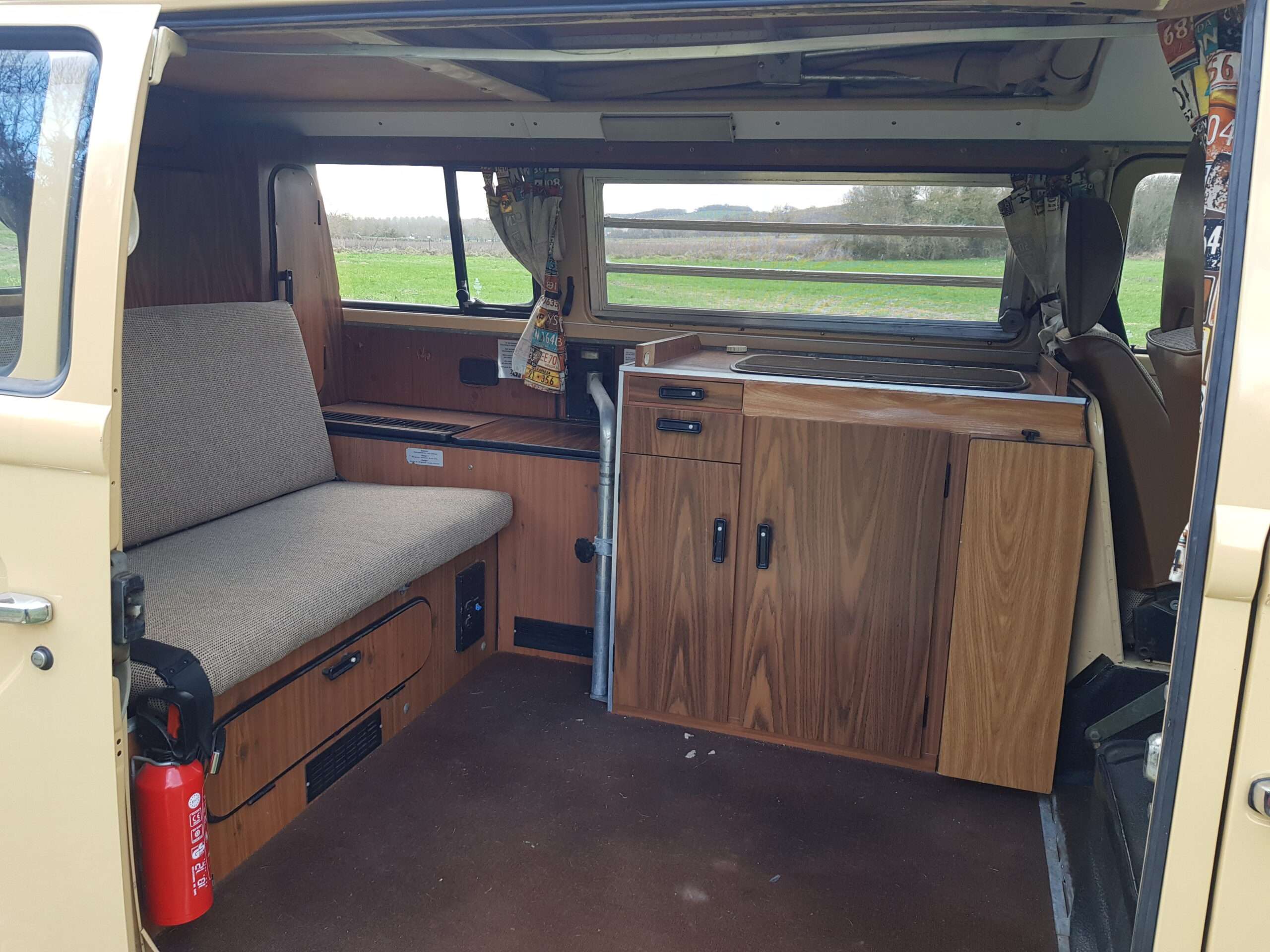 - Aménagement berlin d’origine, modification de l’évier pour montage plaque gaz et point d’eau refait en 2022. Tout est fonctionnel. Seul le frigo est d’origine et ne semble pas très efficace.