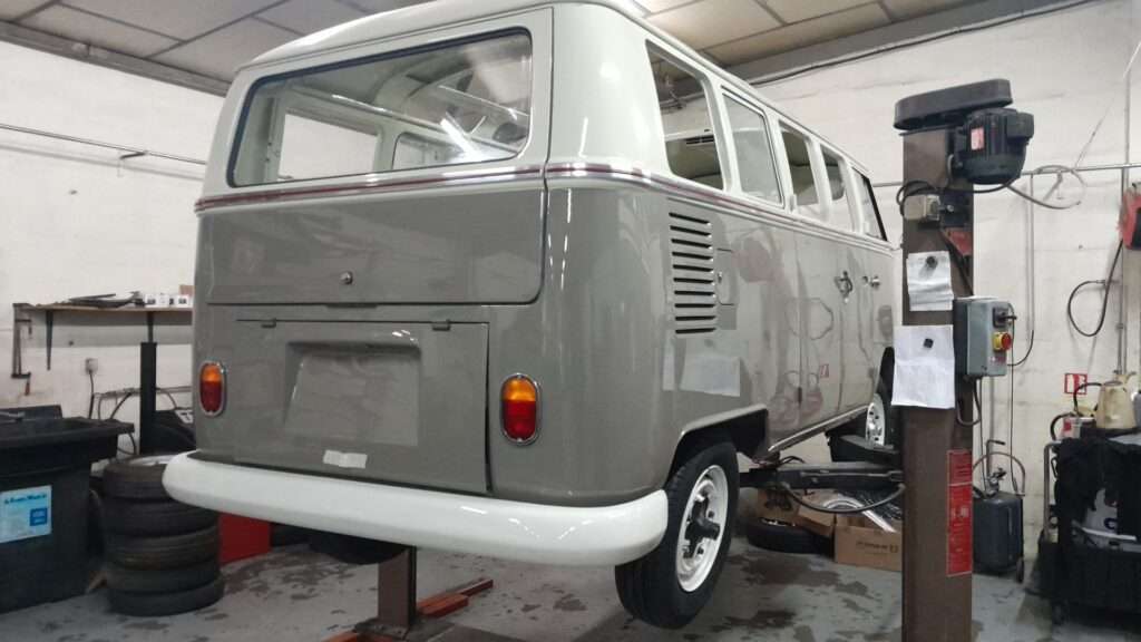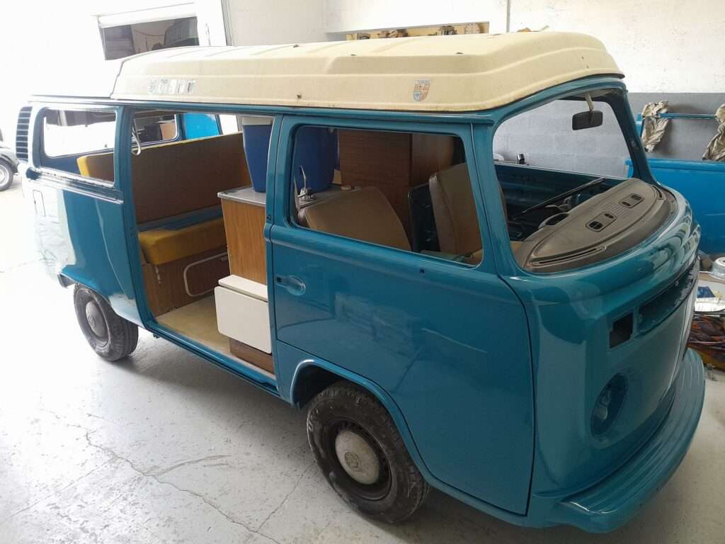 Coloris spécifique au modèle de 1973 sur ce combi entièrement d’origine et dans la même famille depuis l’achat que nous avons eu la chance de remettre à neuf.