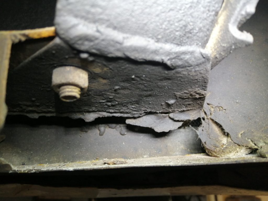 Tous les supports de cric sont bricolés et bouchés au mastic, on voit sur les photos que le mastic a craqué après l’avoir levé sur le pont.