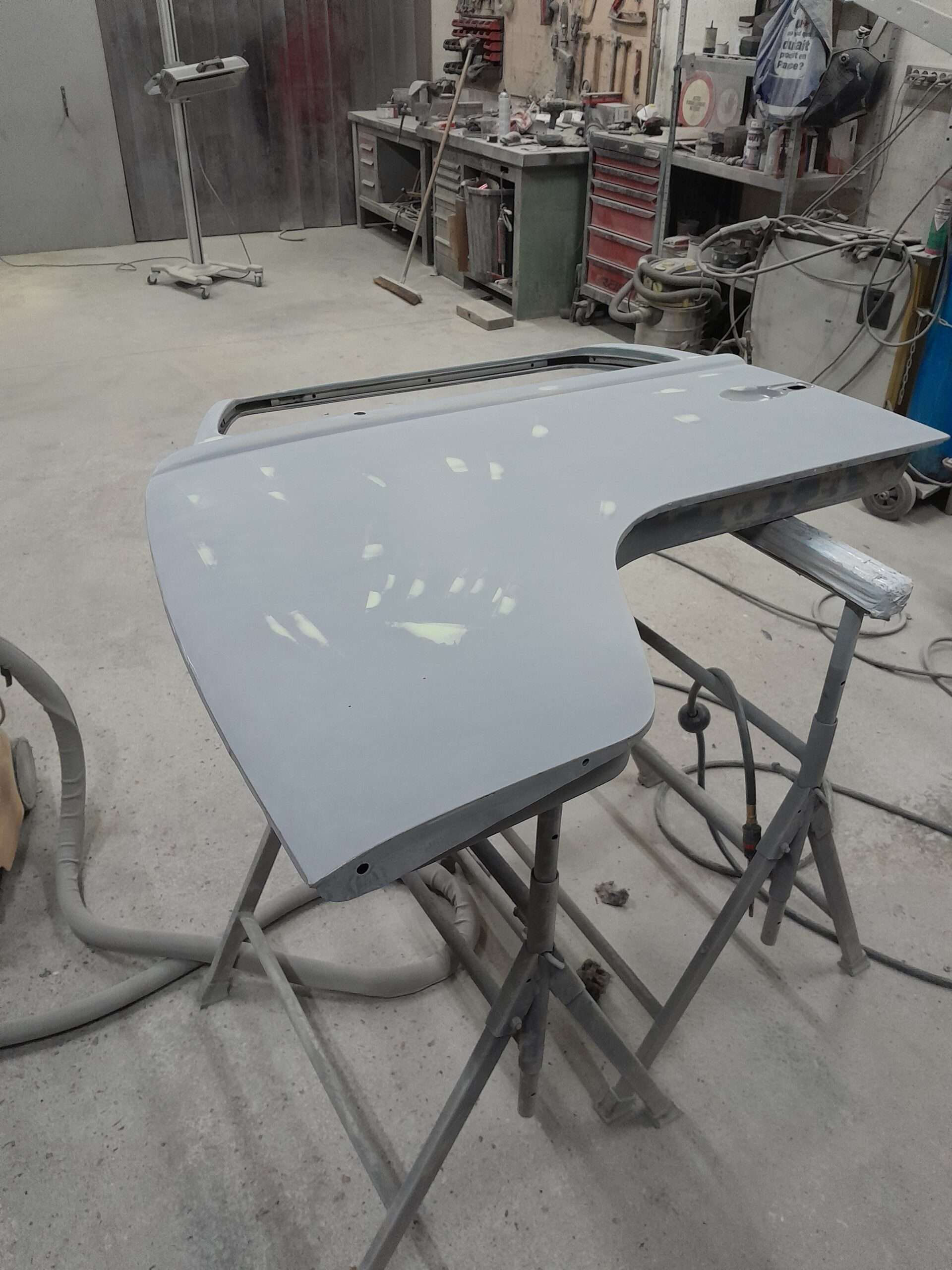 Préparation de notre prochain chantier de carrosserie cette ovale de 1955 entièrement refait à l’époque au plâtre. Plus de 3cm a certains endroits, nous avons rarement vu cela. Tout ce produit sera enlevé avant de partir au sablage.