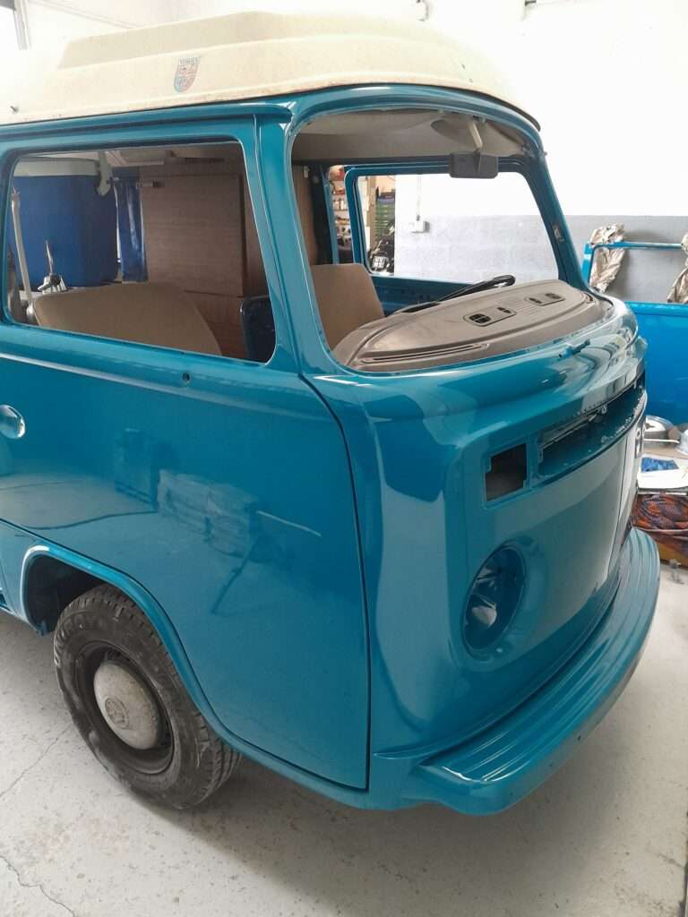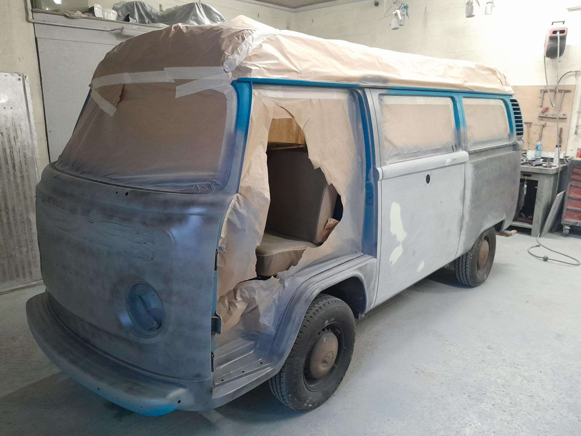Nous lui avons appliqué sa teinte d’origine. Il s’agit d’un bus qui n’avait jamais été refait. Il va être remonté et l’ensemble des joints seront remplacés.