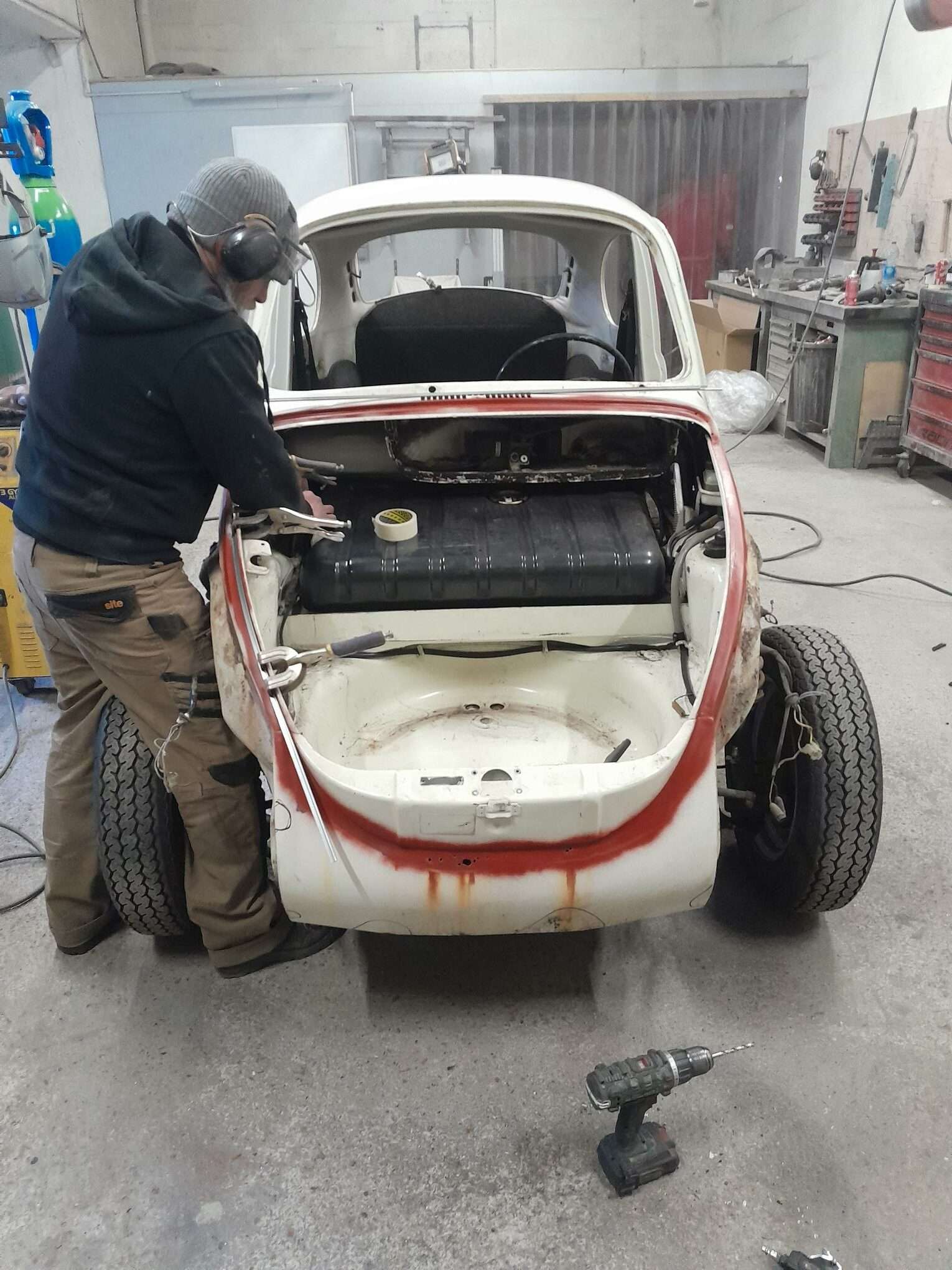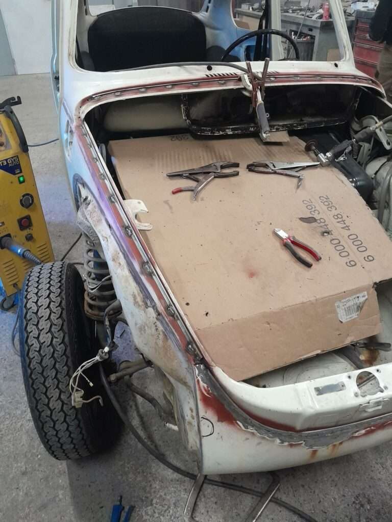 Pour commencer, un démontage complet des vitres, joints, portes, capots afin de traiter l’ensemble des points de rouille