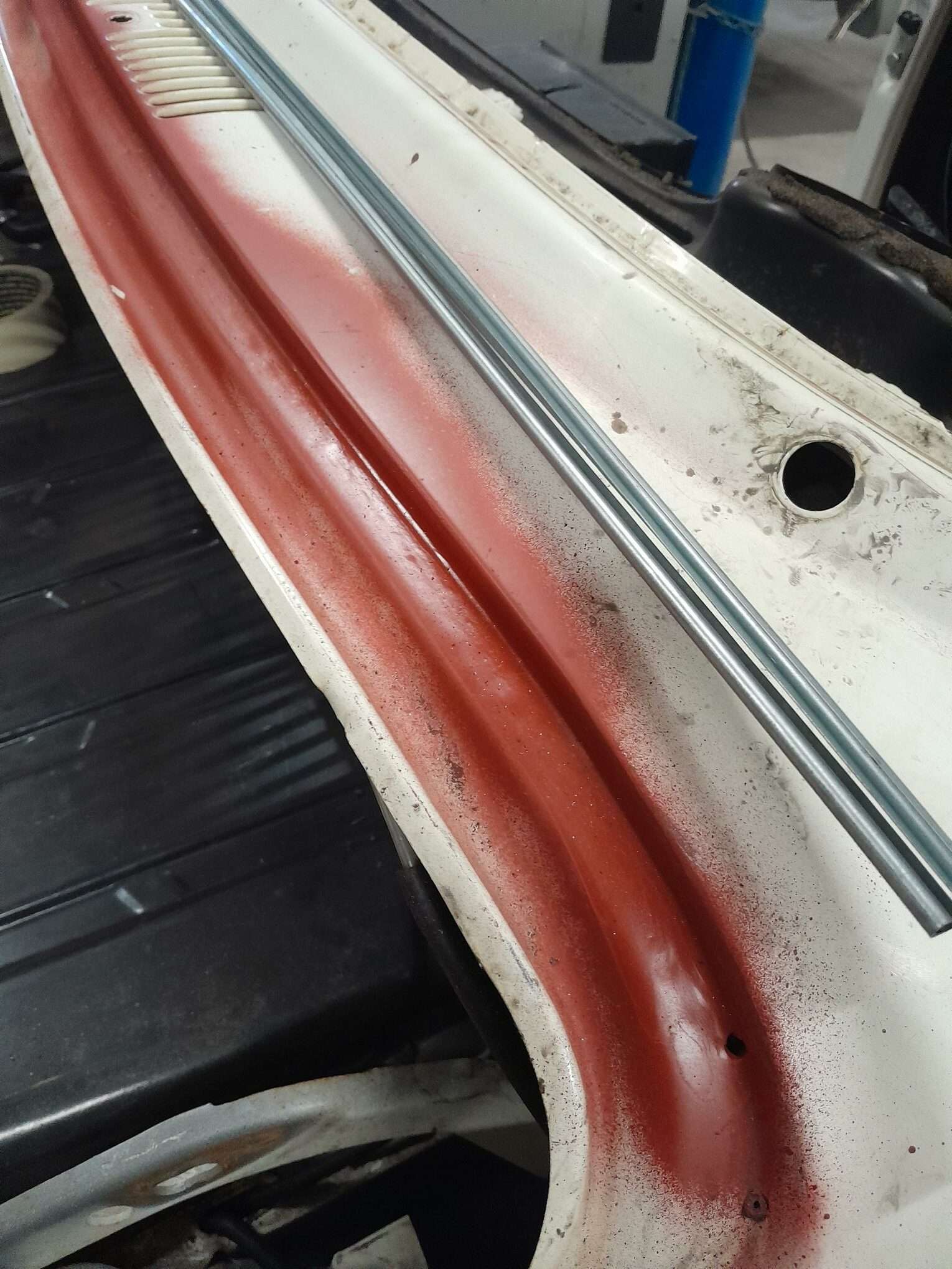 Pour stopper la rouille, l’ensemble des joncs qui tiennent les joints seront dépointés pour être remplacé par des neufs, évidement la tôle endommagée sera changé et traitée au phosphatant.