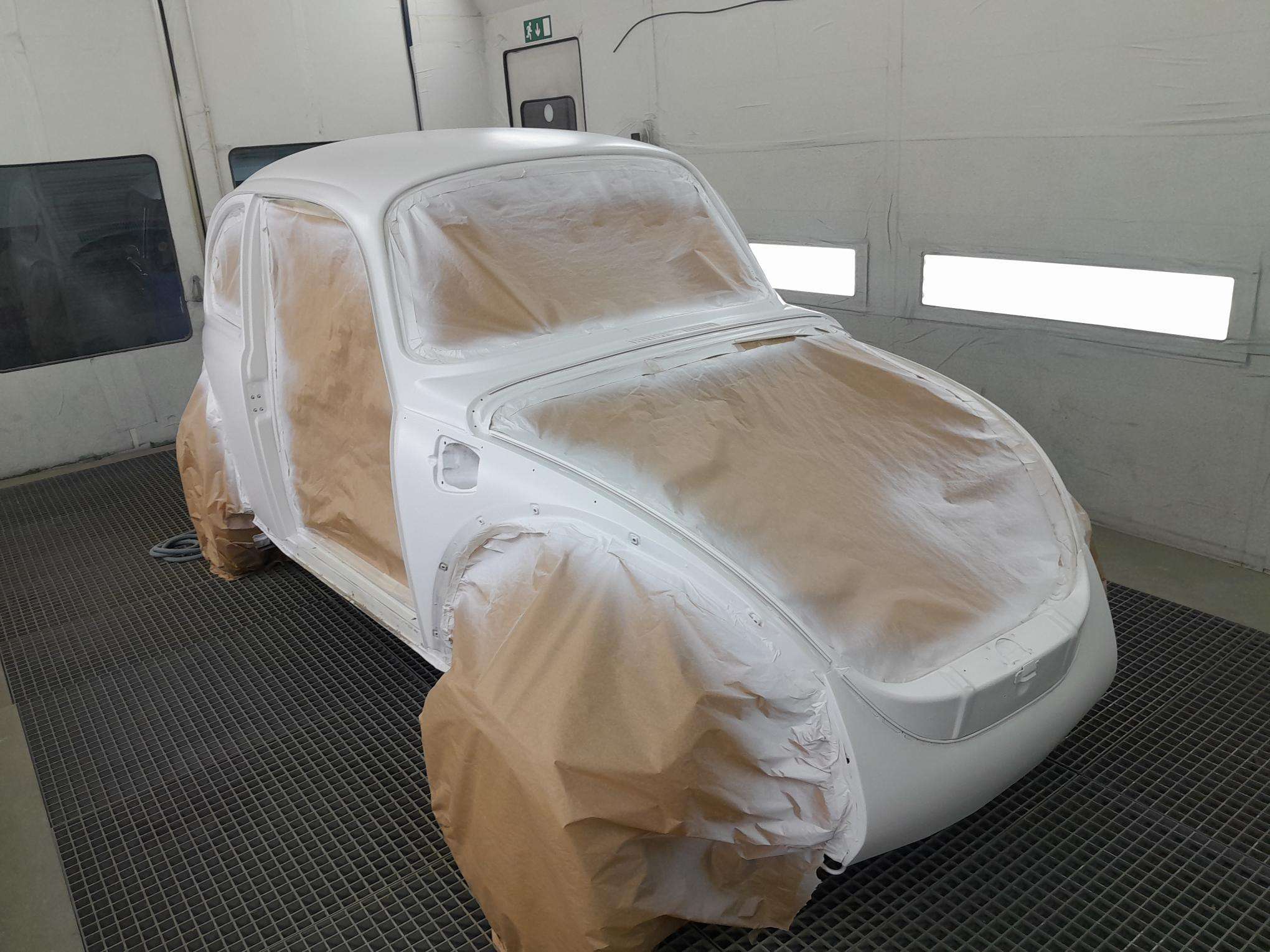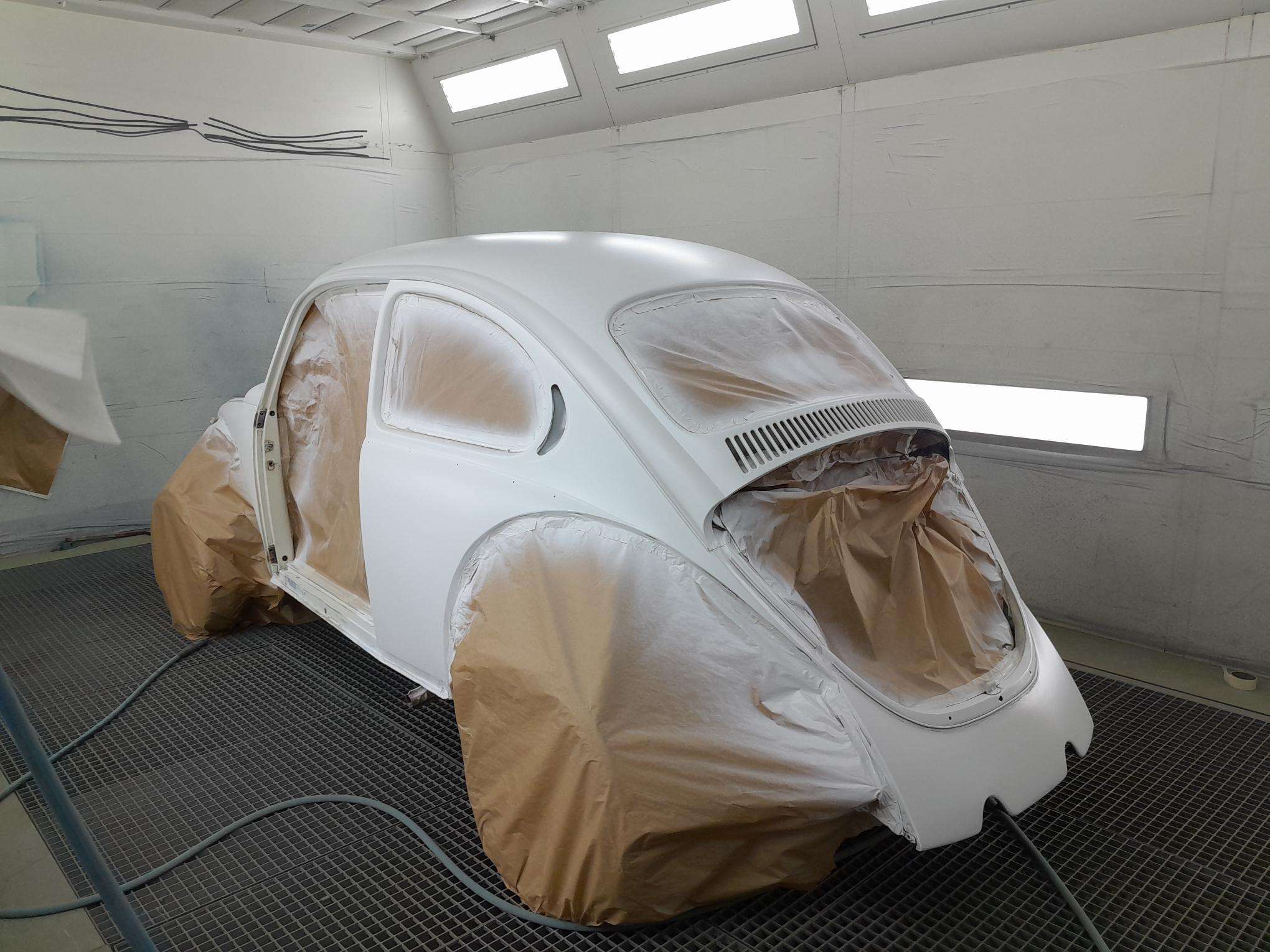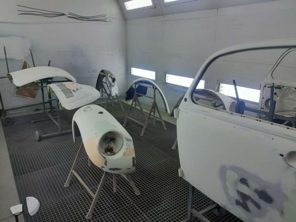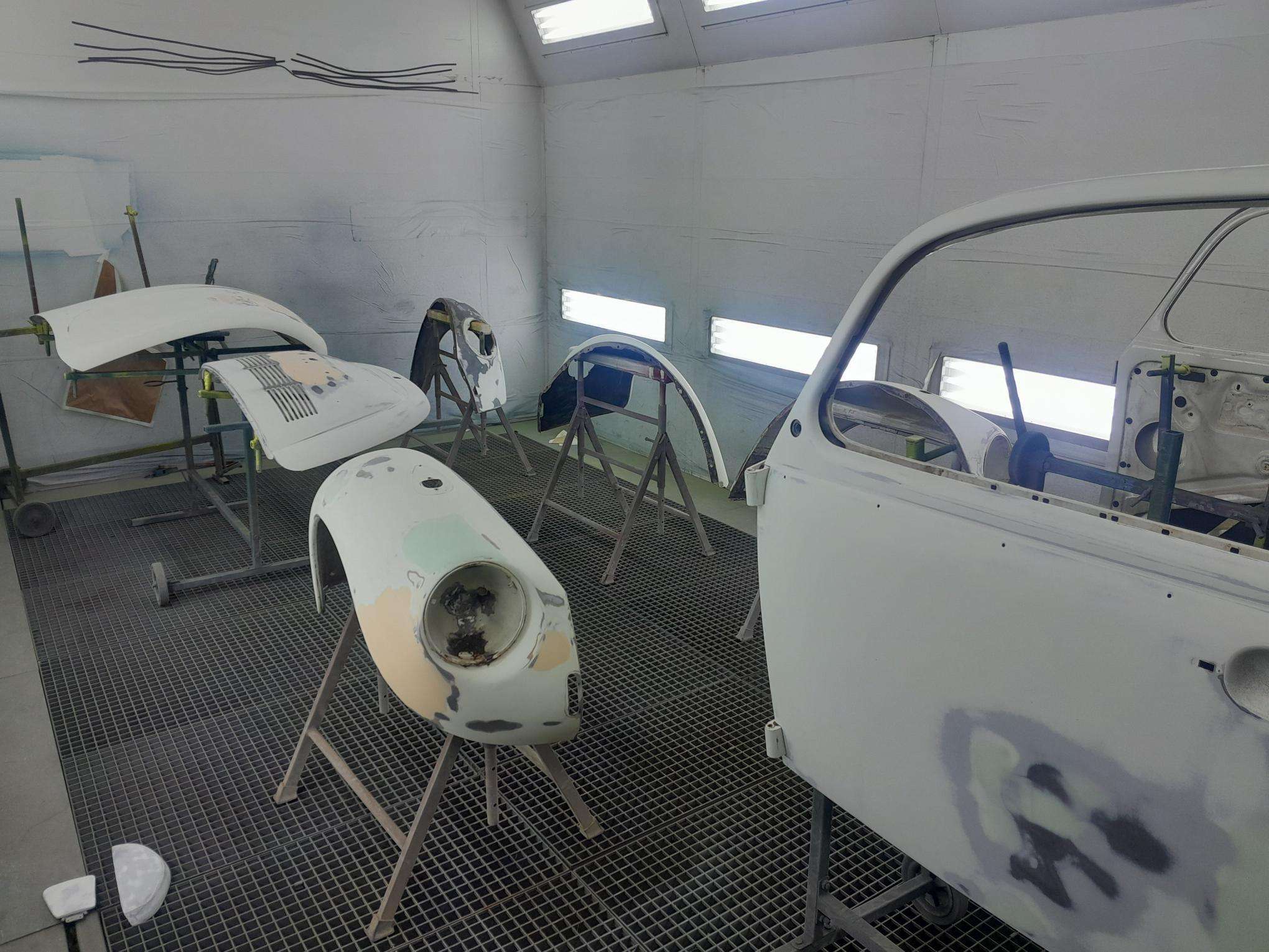 La caisse est ensuite mise en apprêt blanc de finition car elle retrouvera sa teinte d’origine L90D.