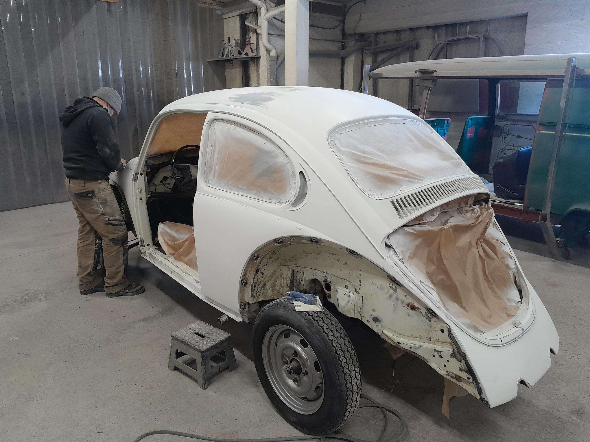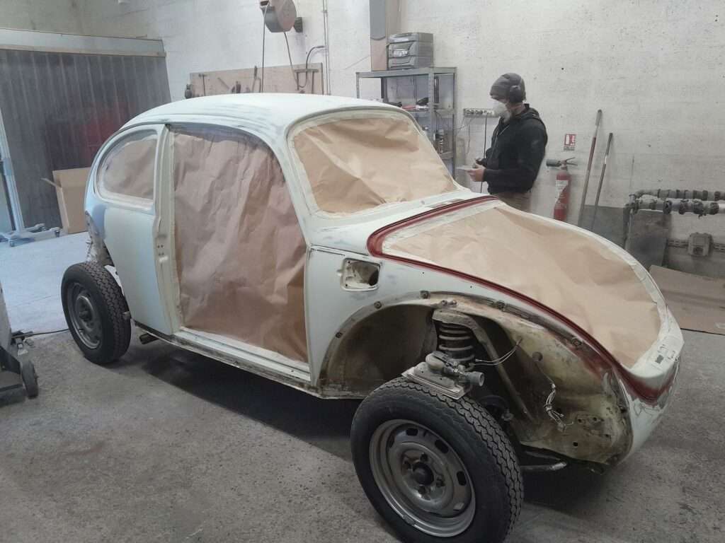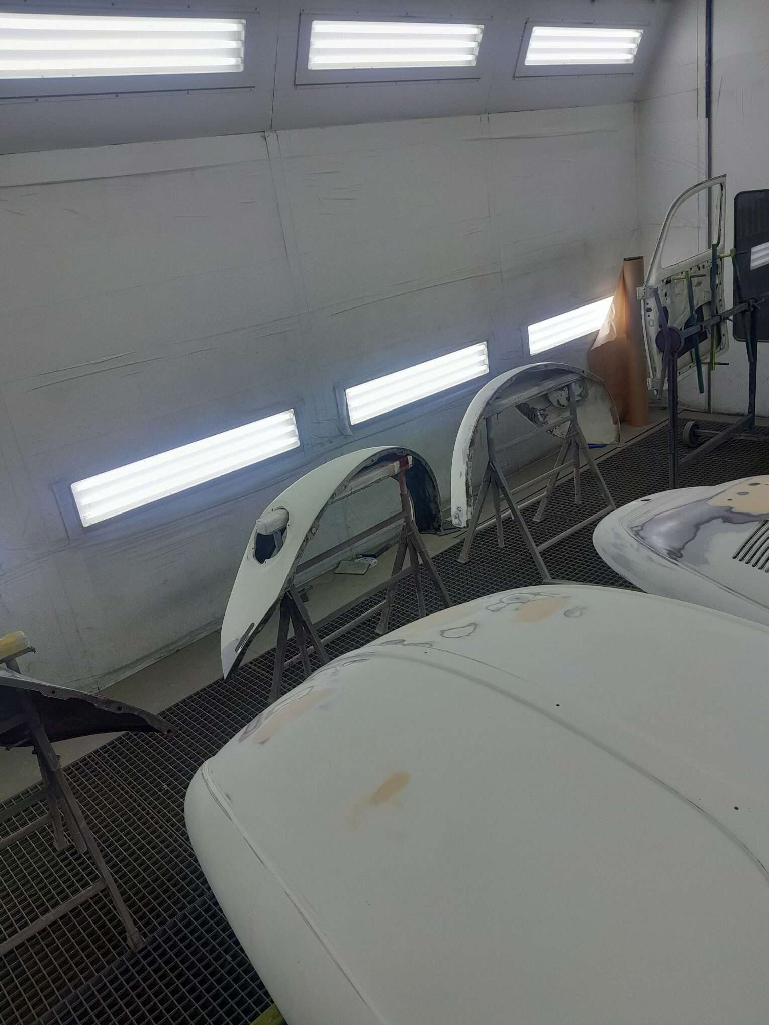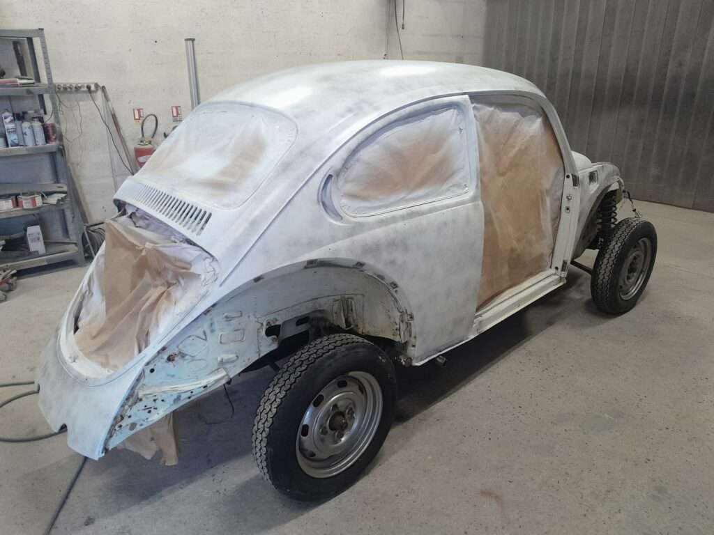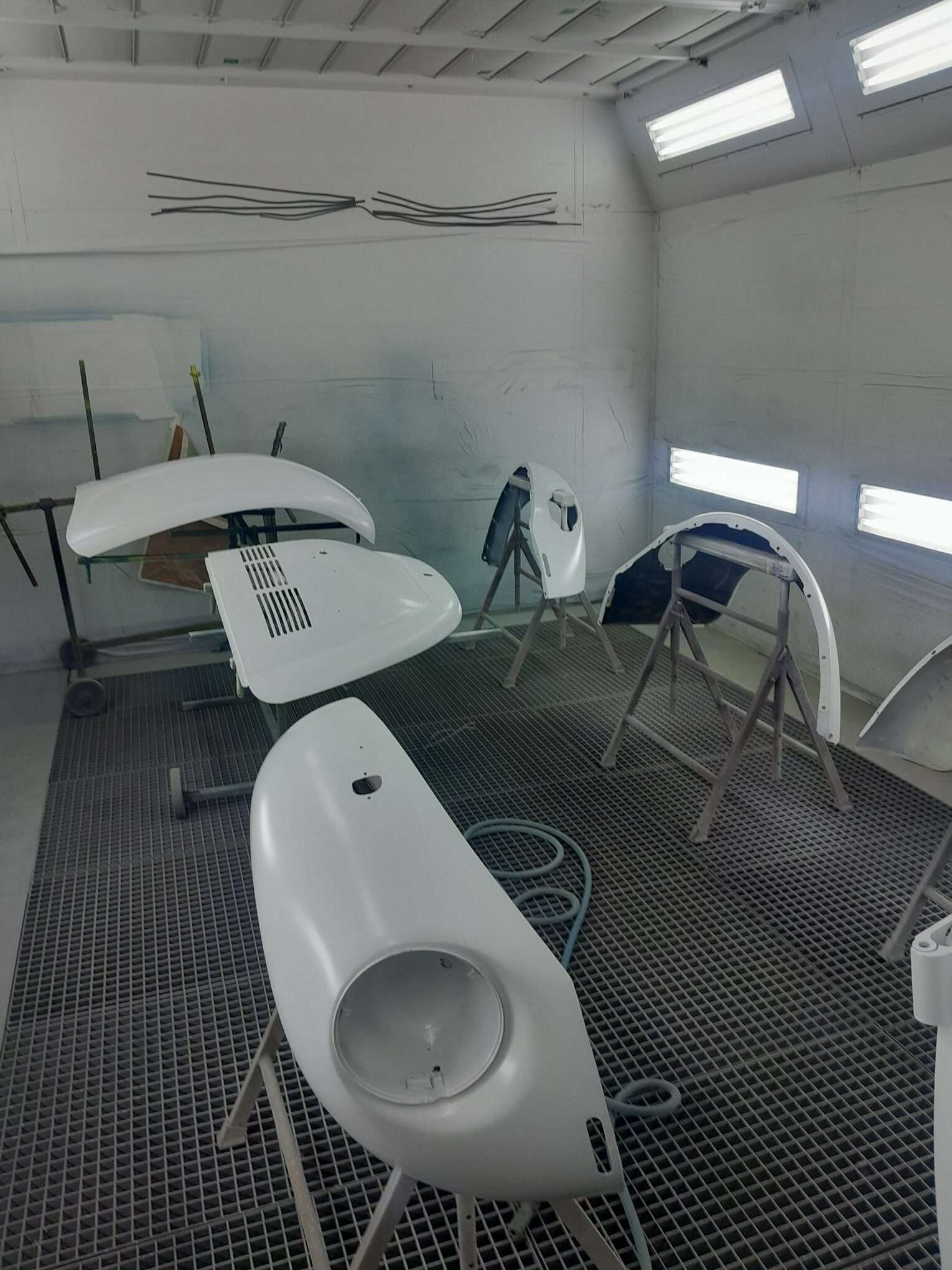 La caisse est ensuite mise en apprêt blanc de finition car elle retrouvera sa teinte d’origine L90D.