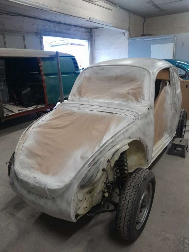 Du guide sera mis pour apprécier les derniers défauts. Toute la caisse et les éléments seront re-poncés avant de recevoir ses couches de peinture. A suivre