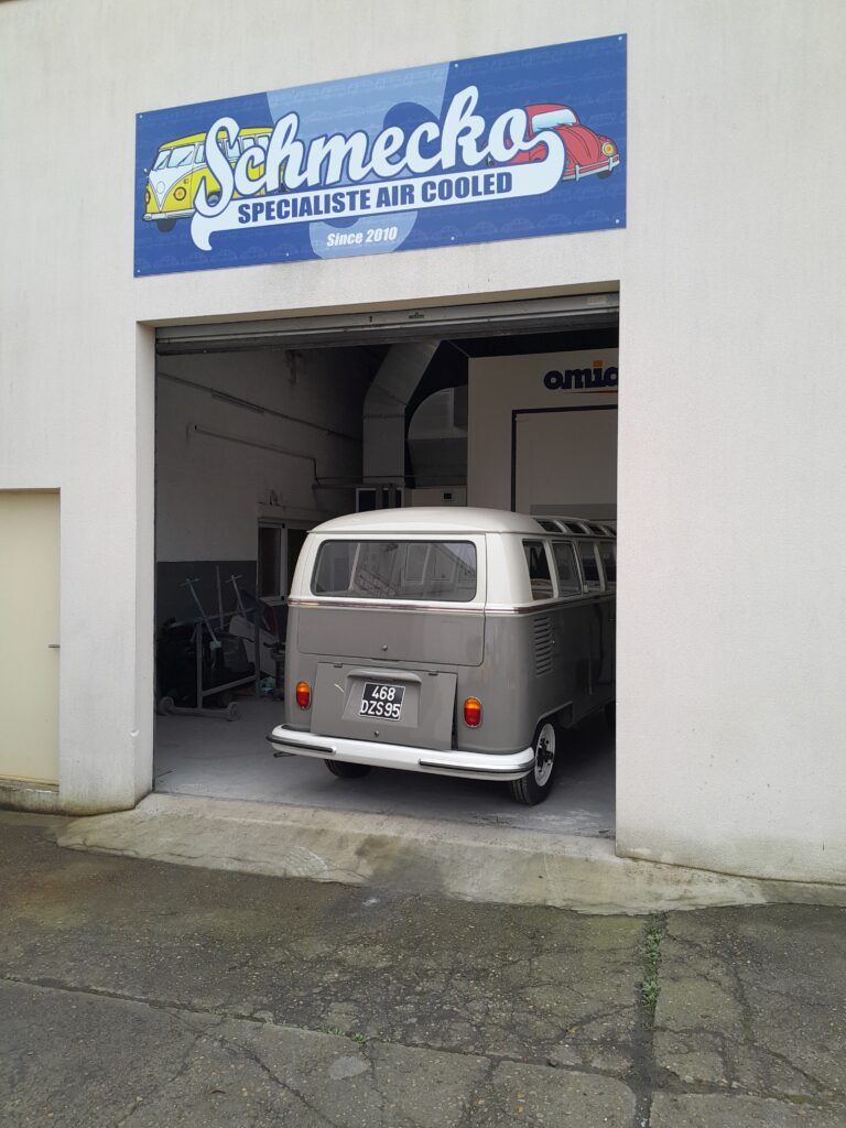 La baie passera ensuite en peinture avec la teinte d’origine. Le pare brise feuilleté sera ensuite installé.