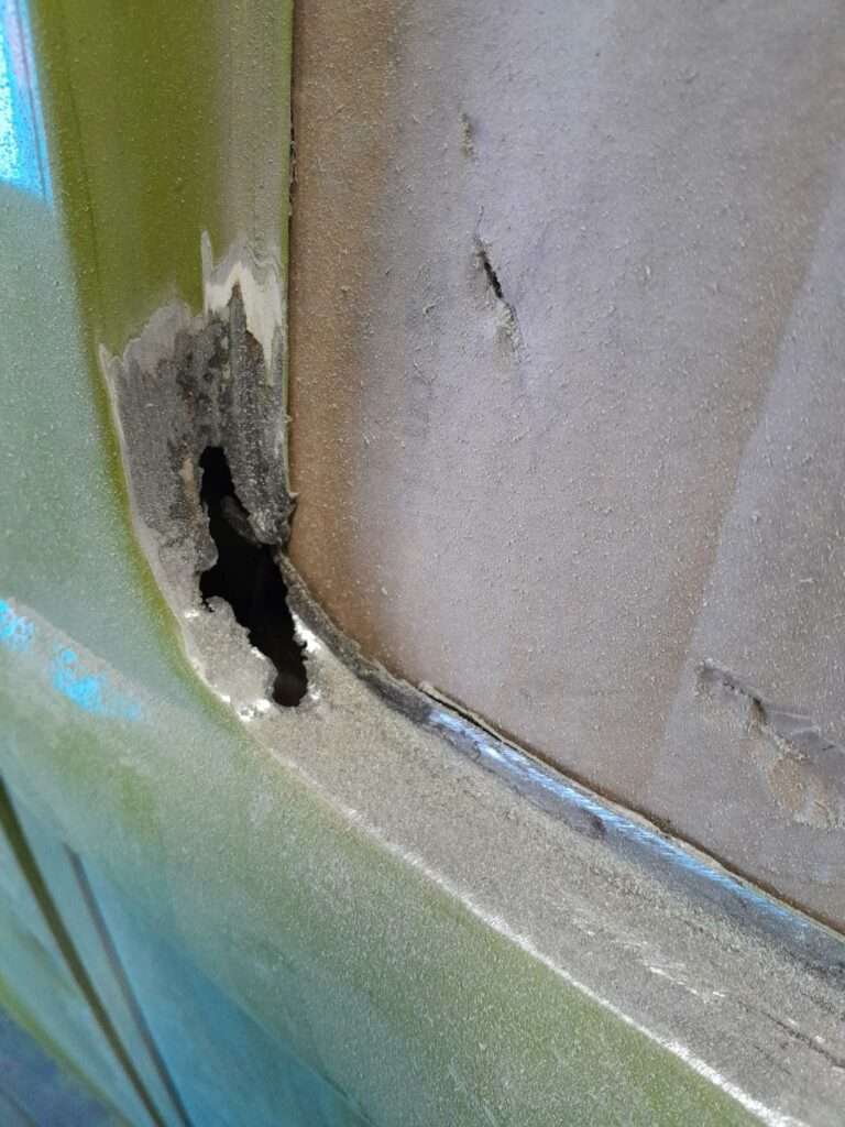 Une fois les trous refermés, les panneaux soudés et redressé, Julien s’est occupé de refaire l’ensemble des joints propre