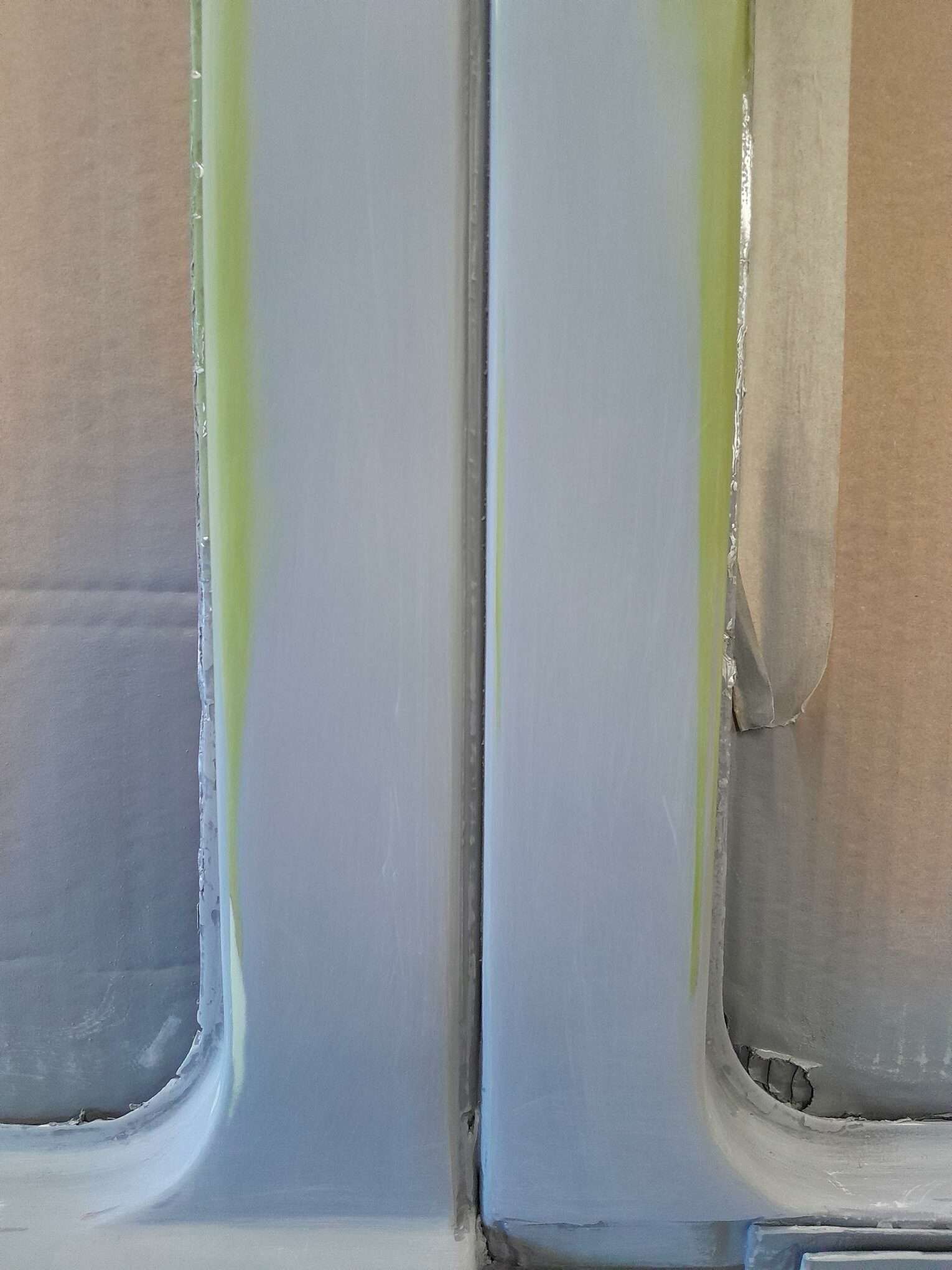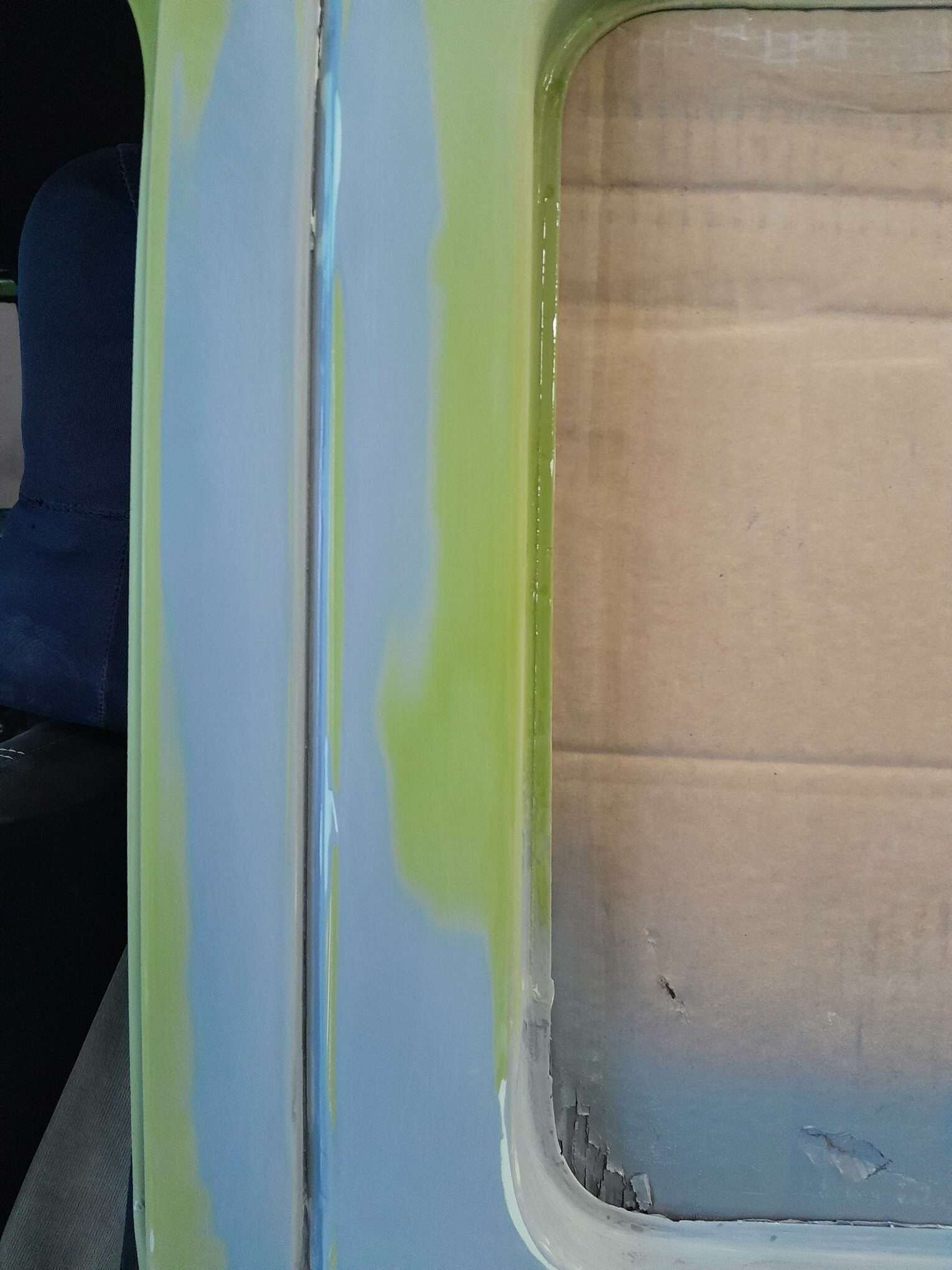 Une fois les trous refermés, les panneaux soudés et redressé, Julien s’est occupé de refaire l’ensemble des joints propre