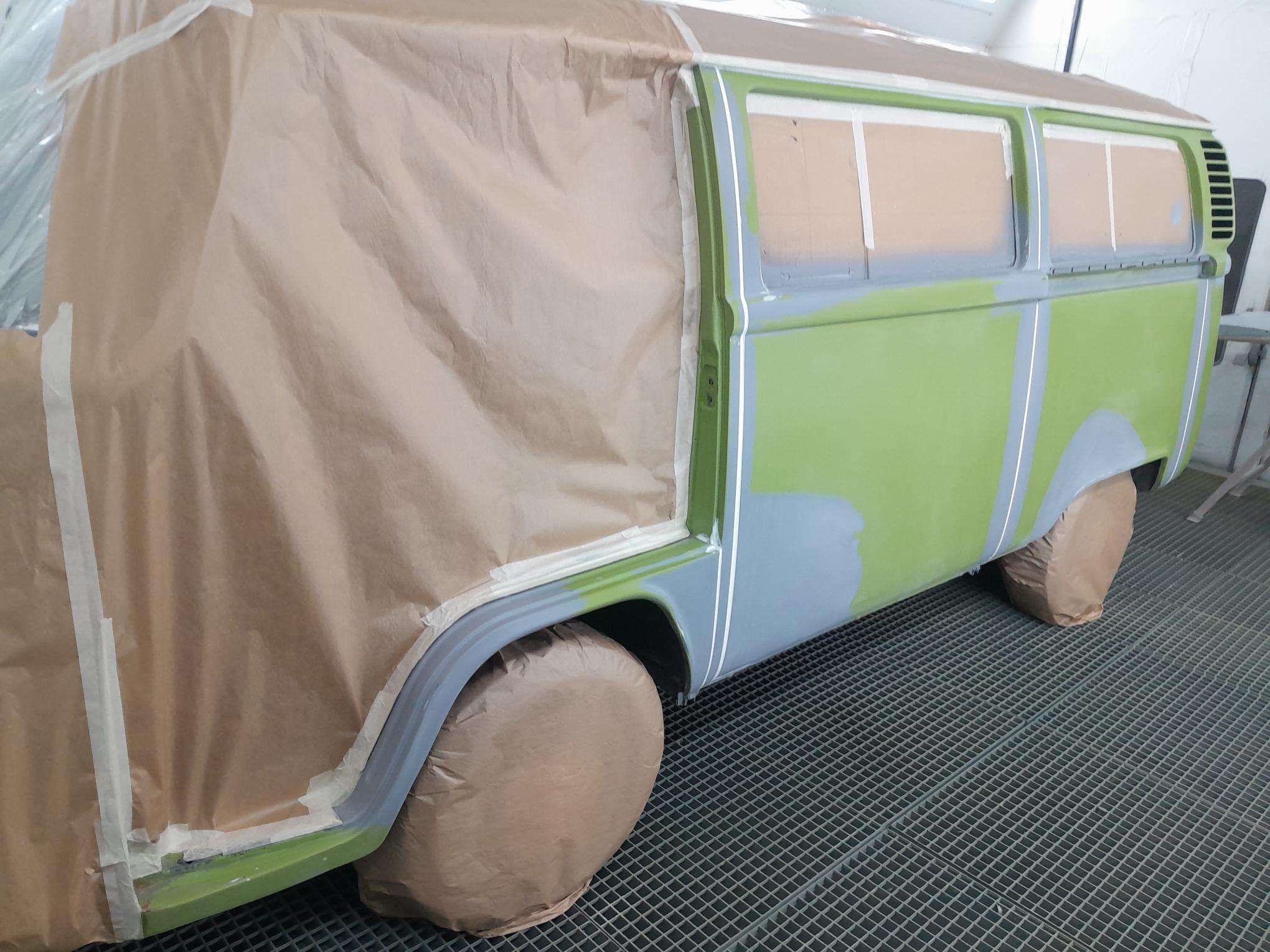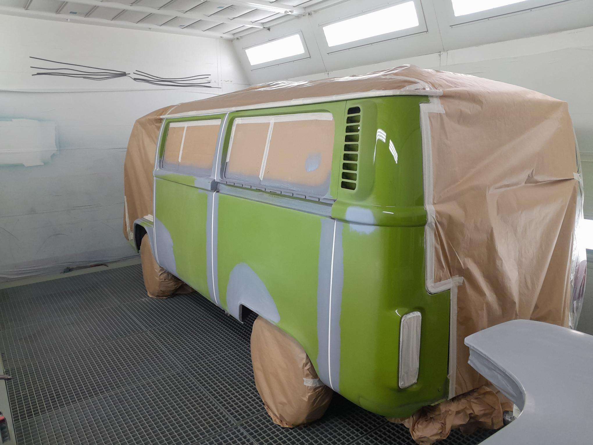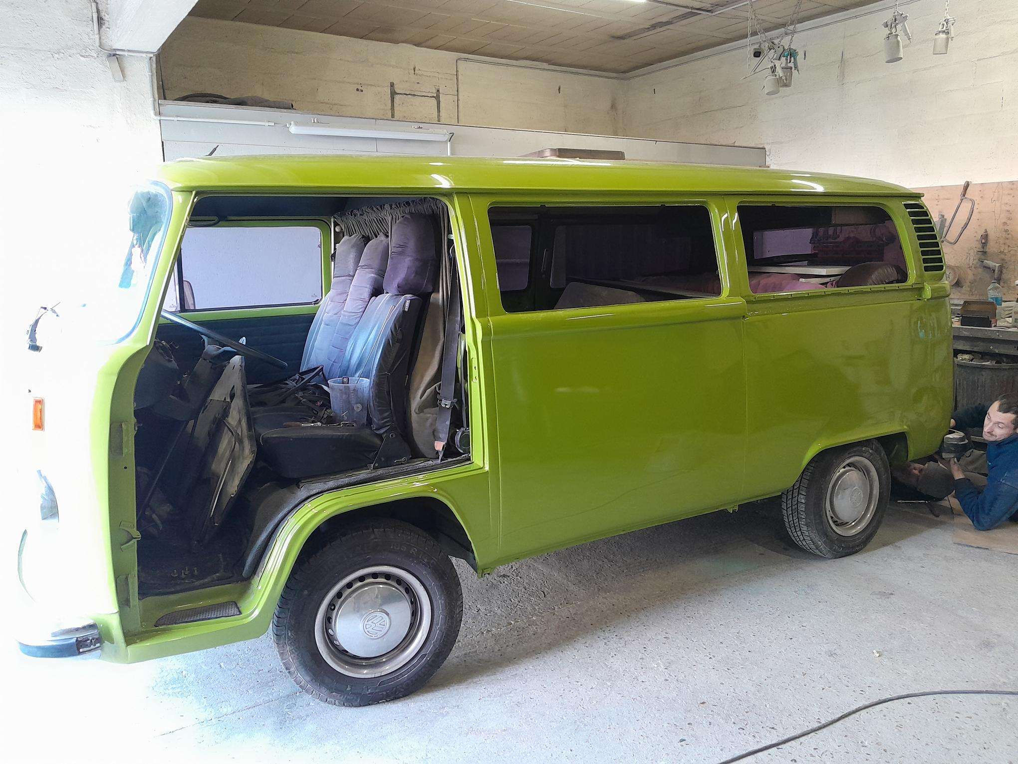 Suite a un sinistre avec un autre usager, le lateral gauche de ce T2 devra être repris en carrosserie mais malheureusement celui-ci a deja reçu des réparations pas forcement dans les règles.