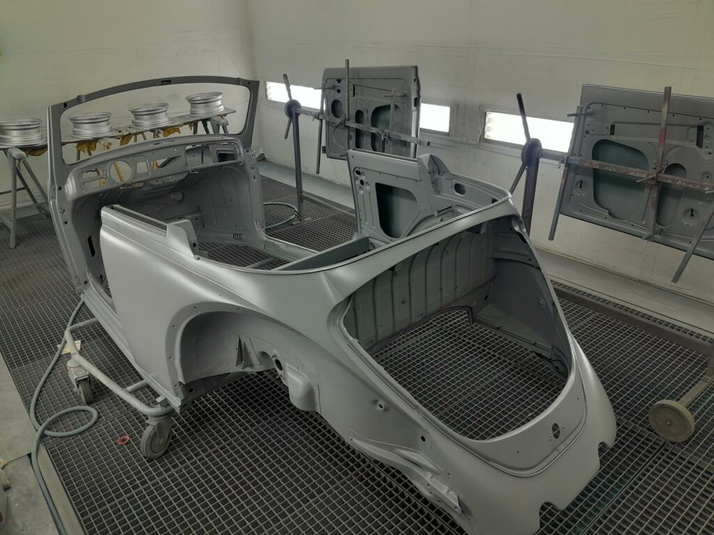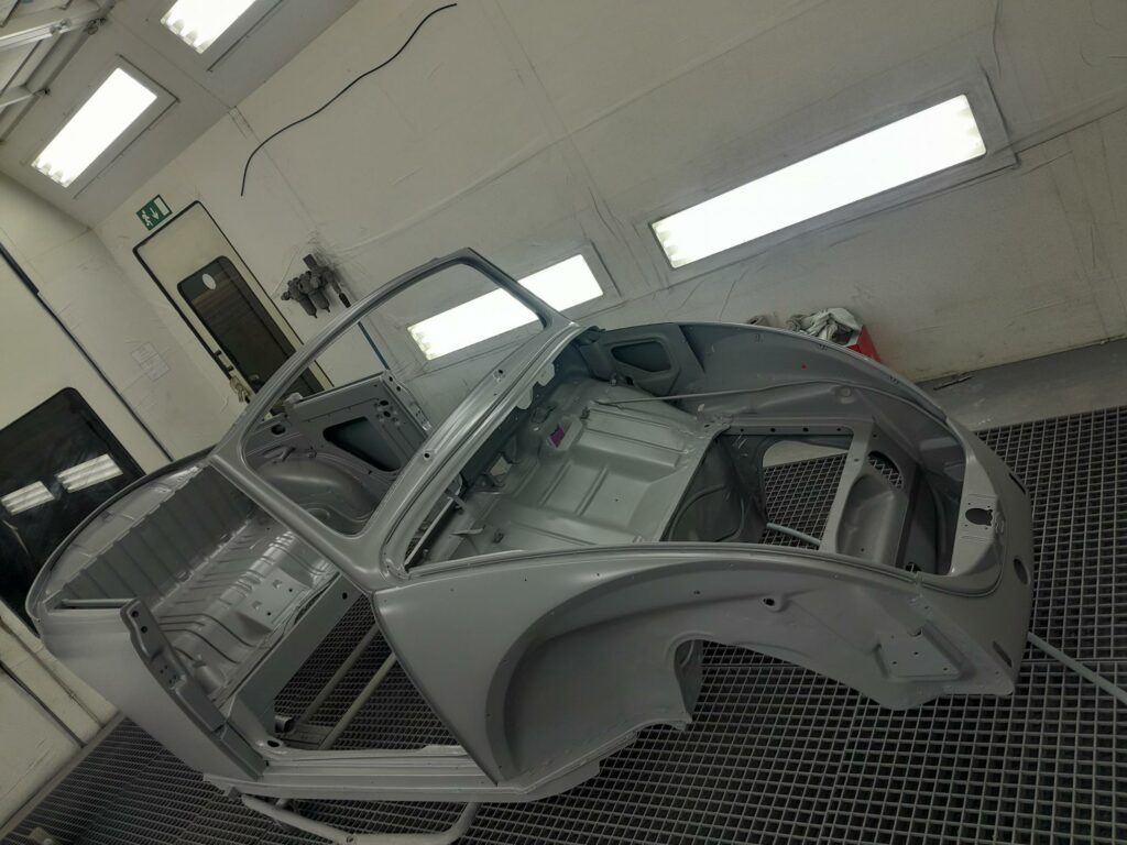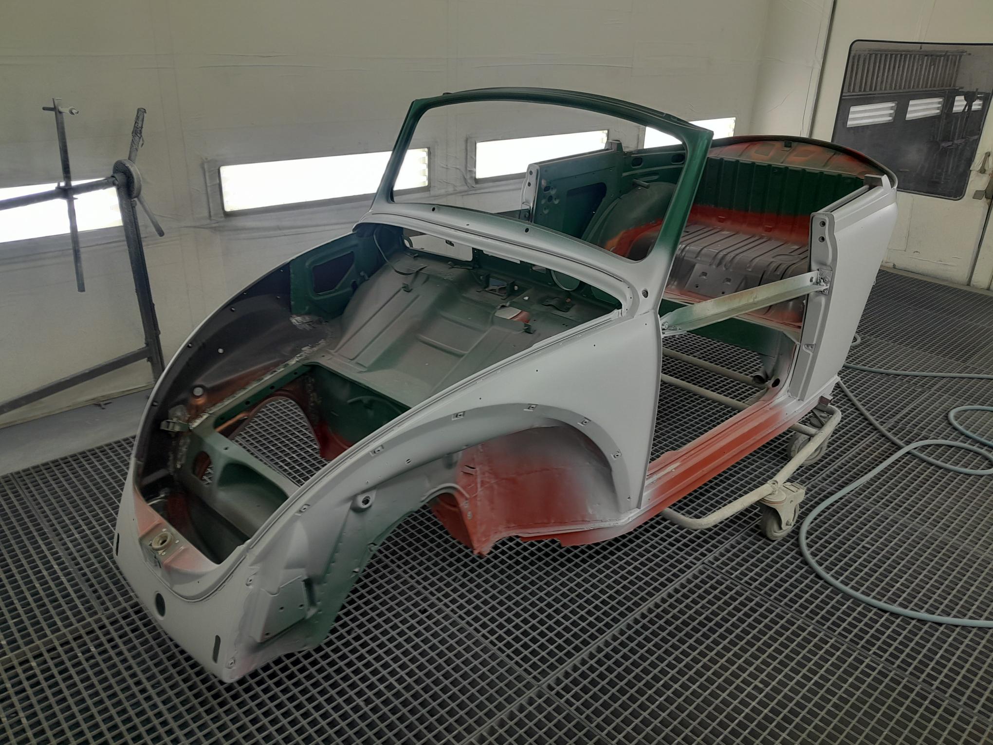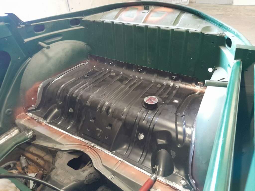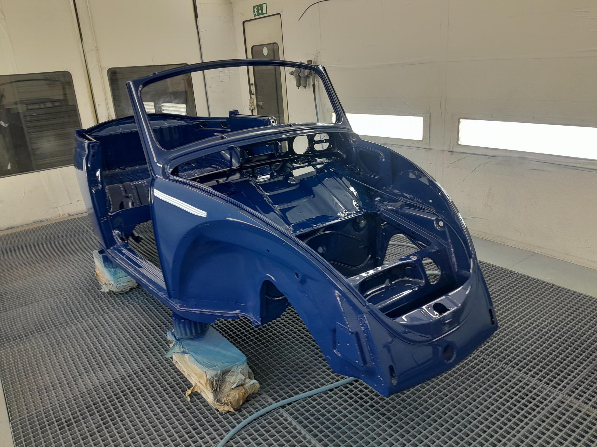 Une fois les soudures terminés, la caisse sera à nouveau décapée pour être redressée au tire clou puis traiter au brun rouge phosphatant. La caisse recoit un apprêt polyester.