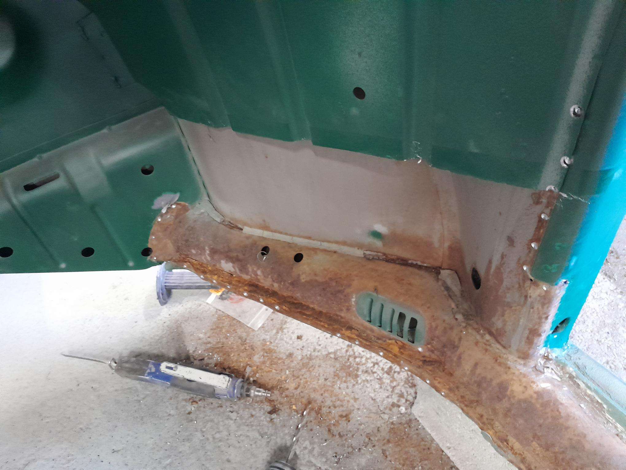 La coccinelle est partie au sablage afin de traiter tout les points de corrosion. Initialement seul les renforts de longerons devaient être remplacés. Finalement les longerons qui présentaient bien montrent finalement de grosse traces de corrosion. Nous prendrons finalement la décision de les remplacer également.