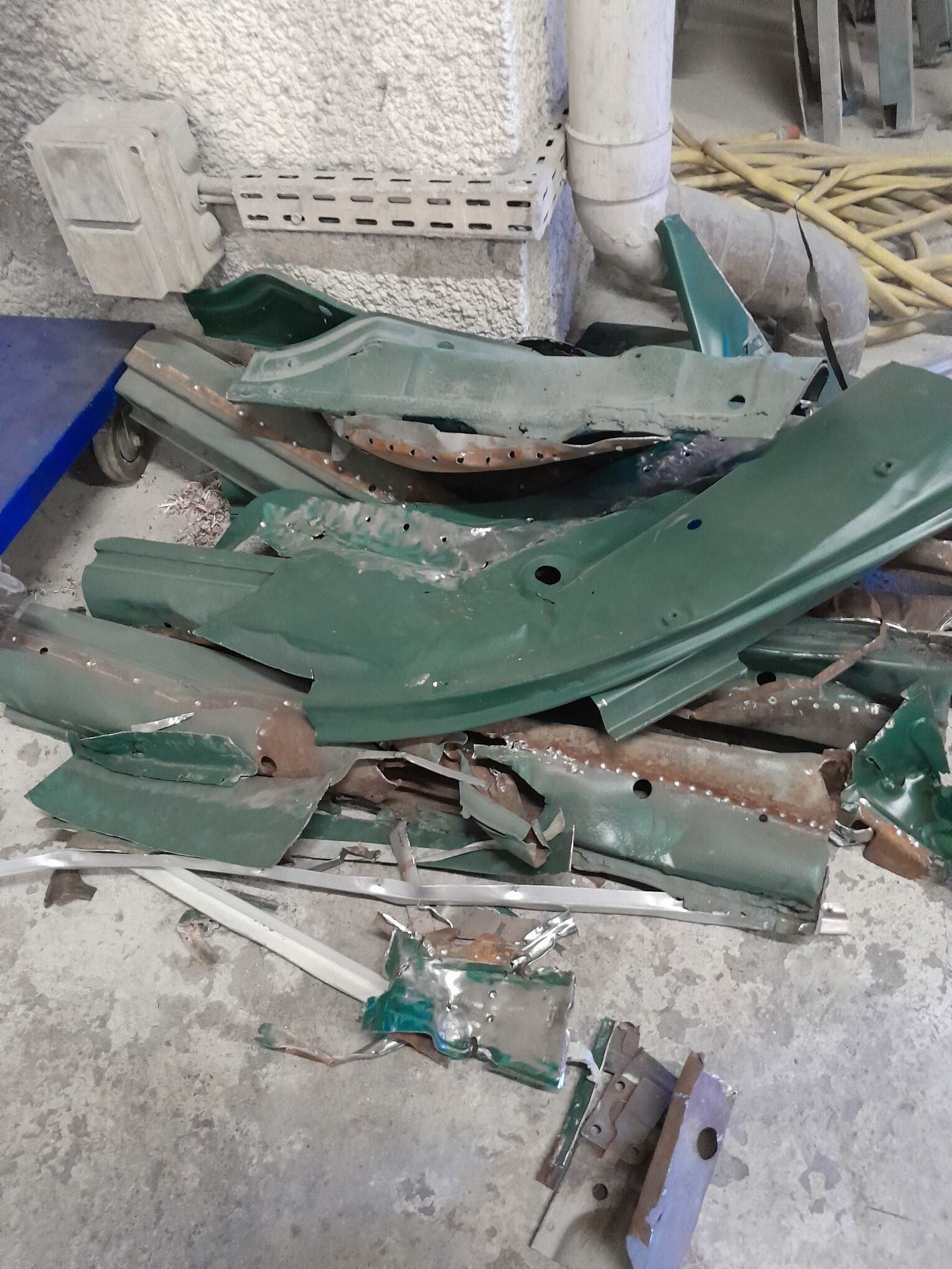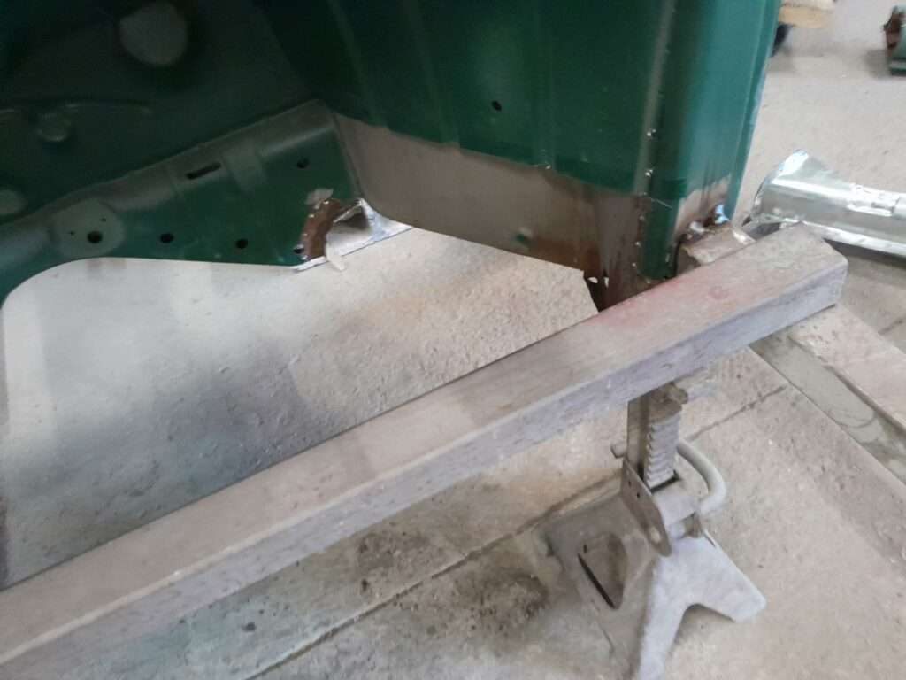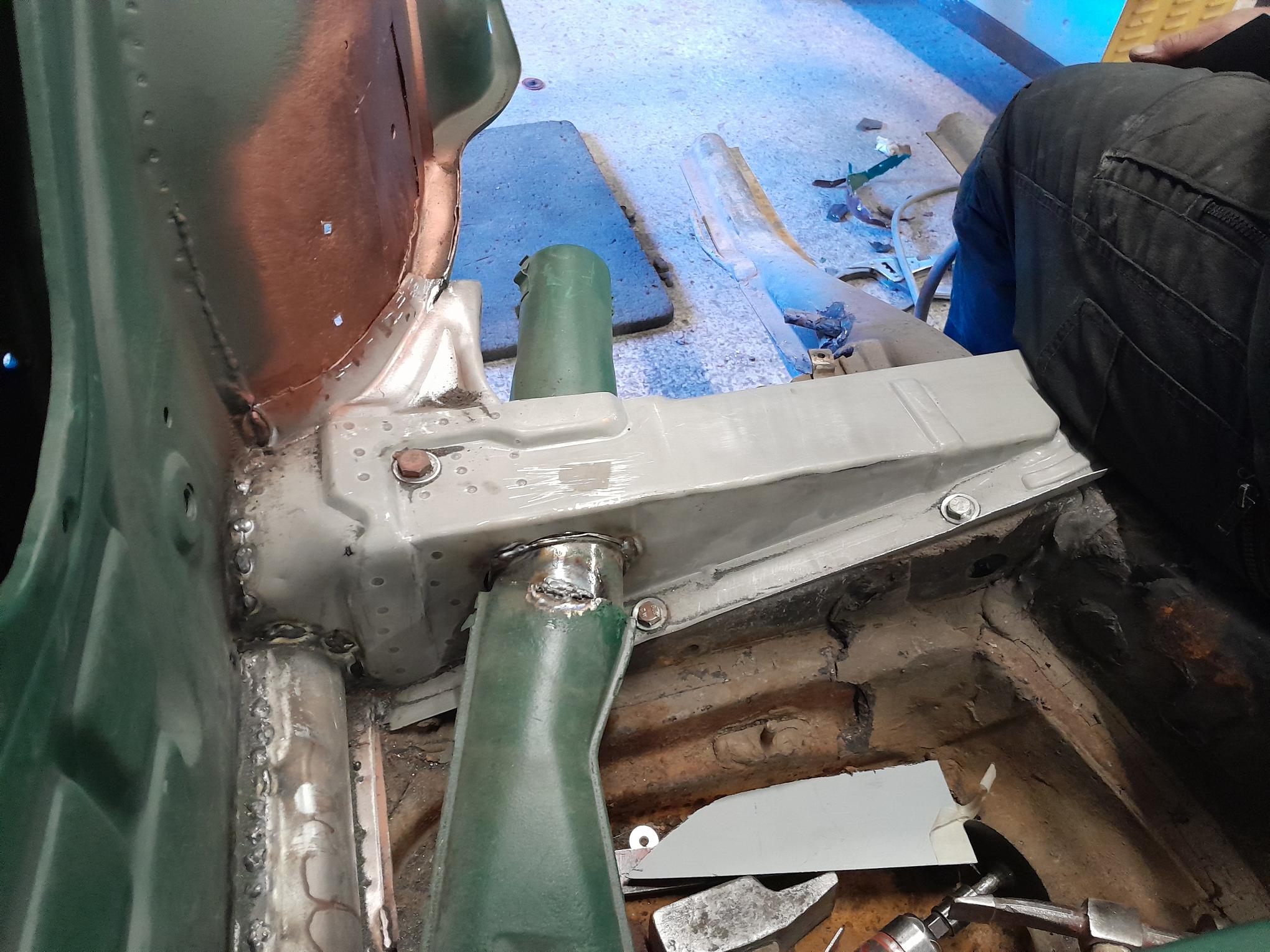 Les travaux se poursuivent sur le bloc arrière, remplacement de la tôle de coffre arrière, remplacement des pointes arrières et des supports de chassis.