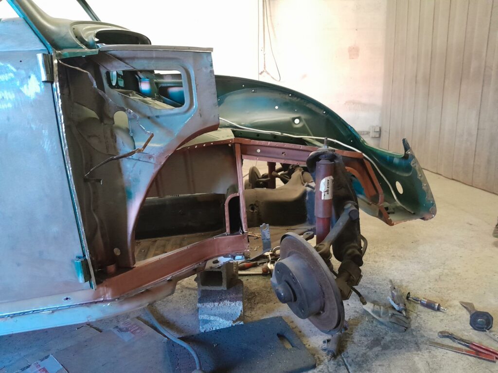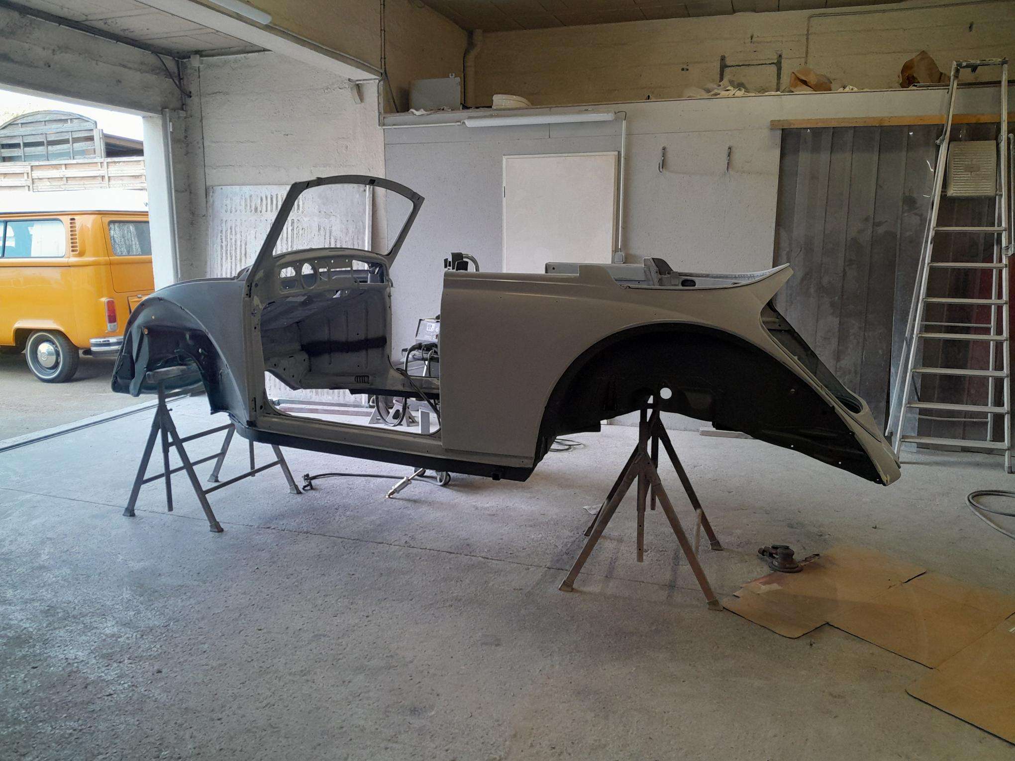 A ce stade de la restauration, cet article de quelques lignes et de photos aura nécessité pas moins de 280 heures de travail de carrosserie pour en arriver a ce degré de restauration.