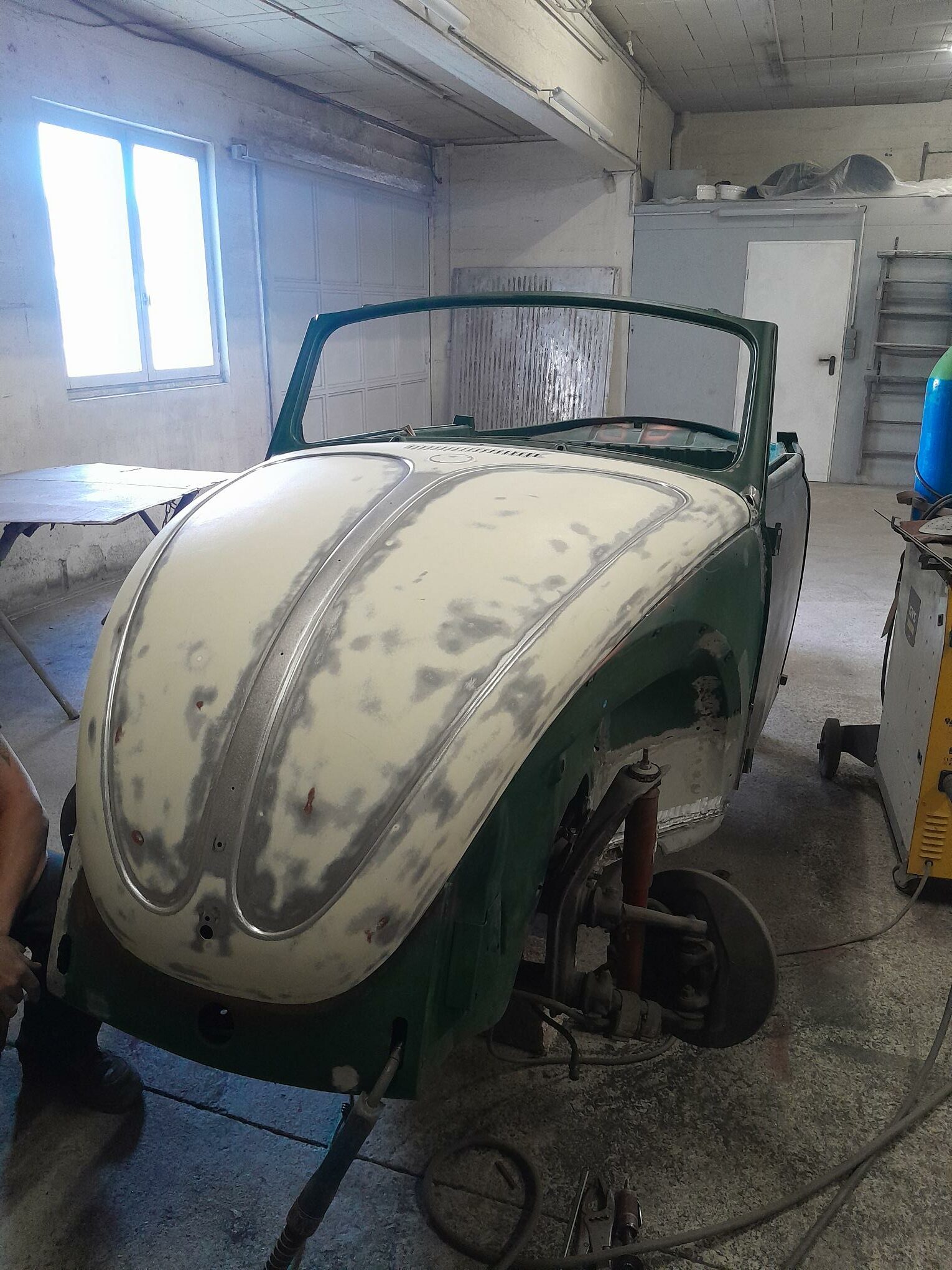 C’est partie pour une nouvelle restauration. Une coccinelle cabriolet de 1967 qui a été arrêtée il y a une vingtaine d’années et passée entre diverses mains pour être restaurée mais personne n’a réellement lancé le projet.