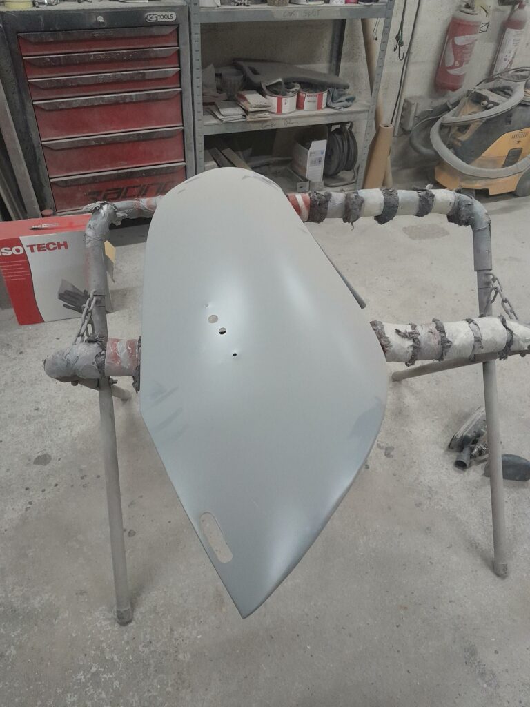 Réparation de la joue d’aile gauche, remplacement de la joue d’aile droite complète à droite compte tenu de grosse déformations bien camouflés sous le mastic.